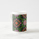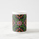 Eine schicke China Kaffee-Tasse mit einem farbenfrohen RANGOLI-Muster auf schwarzem Hintergrund. Als Teil der Posh & Painterly 'Rangoli' Kollektion passt dieses Muster in jede Tasse.