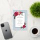 Gartengrüne Blume mit roten und rosa Blume, grüne Blätter und eine Kaskade mit kleinen Blumenhäuten. Anpassbare Text- und Hintergrundfarben. Kontakt-Designer für weitere Designanfragen