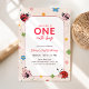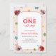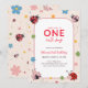 Floral Red Pink One Cute Bug Ladybug 1st Birthday Einladung