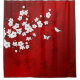 Floral Red White Cherry Blossom Oriental Duschvorhang