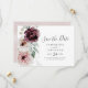 Diese horizontale, blumengeschmückte Save the Date-Karte eignet sich ideal für eine elegante Hochzeit. Das moderne rustikale bohobische Design besticht durch romantische Aquarellfarben in sanften Farbtönen wie Bordeaux, Lila, Rosa und Cremeweiß mit grünen Blätter.