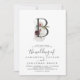 Diese Blumenromane B monogramm Hochzeitseinladung ist perfekt für eine elegante Hochzeit. Das moderne rustikale bohobische Design besticht durch romantische Aquarellfarben in sanften Farbtönen wie Bordeaux, Lila, Rosa und Cremeweiß mit grünen Blätter.