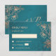 Rose gold floral line art cherry blossoms on a teal background. Matching wedding invitation available.