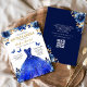 Floral Royal Blue QR Code Princess Quinceanera Einladung