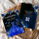Floral Royal Blue QR Code Princess Quinceanera Einladung