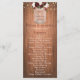 Dieses rustikale Hochzeitsprogramm mit Blumenkohl aus Holz ist mit dunkelbraunem Holzboden, Streichelleuchten oben und den Namen der Braut und des Bräutigams in einem Maurerkirsch, der mit einem bordeauxfarbenen und blütigen Bouquet verziert ist, ausgestattet. Die Vorlagen erleichtern das Ausfüllen eigener Daten.
