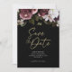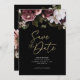 Stellen Sie Ihre Gäste mit dieser blumengeschmückten Save the Date Einladung zu Ihrem Hochzeitstag vor. Das Design zeichnet sich durch eine romantische Blumenillustrierung auf dunklem Hintergrund aus, die ein Gefühl von gotischer, dunkler Eleganz schafft. Ideal für eine Hochzeit im Herbst- oder Winterhochzeit, rette diese Stimmung unseren Tag, um den Ton für Ihre unvergessliche Feier Set.