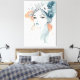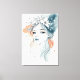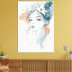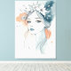 A graceful line-art portrait of a young woman adorned with a delicate floral crown. The soft watercolor splashes of peach and teal blend harmoniously, enhancing her serene expression and ethereal beauty. The fine outlines and subtle shading create a dreamlike balance between minimalism and elegance, capturing the gentle spirit of nature and femininity.