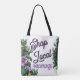 Floral“Shop local, city” A cute and functional tote that is perfect for hauling fresh produce and other goodies from your local market. This bag is ready for a personalized touch. Add your name or phrase of choice. Original art and drawings by artist, KG Nowak. Sweet simple floral design with light bittersweet violet and yellow flowers and delicate vines. Add a personal touch with your name, city, or your own slogan. Carry your purchases with ease and pride for where you live.