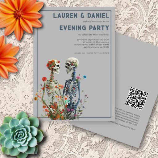 Floral Skeleton Couple QR Wedding Abend Party Einladung