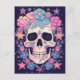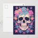 Eine bemerkenswerte Postkarte mit einem Schädel, der mit lebhaften Blume geschmückt ist und von Sternen umgeben ist. Ideal für alle, die das makabre und das wunderschöne Ambiente zu schätzen wissen.