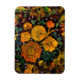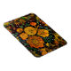 Dieses lebendige Bild verbindet ein Bild mit einer digitalen Kunst, mit leuchtenden, goldgelben und orangefarbenen Blume mit einer faszinierenden, webähnlichen Textur. Die Blume ähneln Rose und anderen Blüten, umgeben von einem Gewirr neonähnlicher Stiele und Blätter in Grün-, Orange- und Rottönen. Der Hintergrund ist dunkel, fast schwarz, was die Lichtwirkung der Blume und des Blattwerks verstärkt. Die kleinen, sternförmigen Lichter sorgen für ein zauberhaftes oder kosmisches Ambiente.