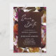 Floral Splendor QR Code Modern Moody Wedding Save the Date.. Unsere einzigartige, blumengeschmückte Save the Date-Karte zeigt eine Anordnung von ölgemalten, rosa, orangefarbenen und cremefarbenen Blume, die von einem malerischen Rahmen aus dunkelsienna überlagert werden, der Ihren Ankündigungstext in einer modernen weißen Kalligraphie-Schrift und eleganten Serifen- und Sans-Serifentypografie enthält. Der Look ist "modern moody" mit dem dunklen sienna Rückseite der Karte zeigt Ihre Hochzeitswebsite QR-Code sowie die URL der Website, sodass Ihre Einladenden leicht alle Details, die normalerweise in einem Hochzeitspaket gesendet werden. Die QR-Code-Grafikvorlage und alle Beispieltexte (außer den grafischen Kalligrafieelementen) können mit eigenen Informationen über die Personalisierungsvorlage leicht überarbeitet werden.