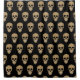 Elaborate floral sugar skull in warm beige with gold accents; curvilinear motifs ideal for Dia de los Muertos inspired apparel and art prints.