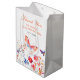 Hübscher Geschenksack mit bunten Blume in Rosa, lila und orange, Schmetterlinge und Blätter. Ideal für ein Brautparty im Frühling oder Sommer. Die Wörter können geändert werden, um Ihre eigenen Angaben oder Anforderungen Anzug.