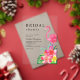 Transport yourself to an oasis of lush greenery, vibrant blooms, and the gentle sway of palm trees. Our invitation sets the tone for a tropical affair, featuring a charming flamingo nestled among exotic flowers and foliage, evoking the spirit of adventure and romance.