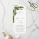 Hochzeitskarte mit tropischem Design, tropischen Blätter, Gelb & Rot, Goldgeometrie & Kalligrafie.