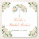 Beautiful bridal shower coaster with a white umbrella and peach and cream floral arrangements. Perfect for a baby shower. The words can be changed to suit your own details or requirements