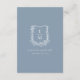 Die klassisch dustig blaue Rezeptionskarte besticht durch ein elegantes monogramm-Wappen im Blumenmuster. Schauen Sie sich die Kollektion an, um die passende Auswahl an Hochzeitssuite mit blauen Blumen und Wappen zu sehen.