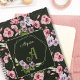 Dieser Aquarellkalender hat Ihren Namen und Monogramm-Initial in einem modernen, kursiven Drehbuch in einem eleganten Rahmen, mit Blume und Blattwerk auf einem dunklen Hintergrund. Dieses stilvolle botanische Design wird durch ein niedliches Muster aus gürtelrosa und lila Blumen und grünen Blätter auf schwarz ergänzt.