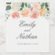 Elegante Hochzeitsweinetiketten mit einem weichen, blumenfarbenen Aquarell in Rosa-, Pfirsich- und Grüntönen. Klassischer Text in weichem Grau kann vollständig personalisiert sein. Matching Wedding Collection im Little Bayleigh Store!
