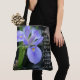 Hübsche blumengeschmückte Tasche mit Vers von der Schrift; wunderschöne lila Wasseriris, mit Luke 1:45 auf der Seite der Blume geschrieben. Selig ist sie, die geglaubt hat, dass der Herr seine Versprechen an sie erfüllen würde! Die Tote-Tasche mit Volldruck ist in zwei Größen erhältlich.