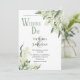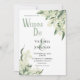Wunderschöne weiße Wildblumen umgeben von zarten Aquarellfarben-Grüntönen, die diese blumengeschmückte Hochzeitseinladung verzieren. Einfachheit mit einem Hauch von Eleganz. Ideal für jede Hochzeit zu jeder Jahreszeit. Einfach und süß.