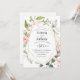 Schöne, weiche rosa, rot-grüne Blume schaffen eine Rahmenform zur Kontur dieser wunderschönen Einladung. Weiche Aquarellfarben. So hübsch für jede Jahreszeit. Das Goldrahmen Set den Ton für Eleganz.