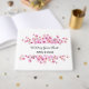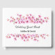 Dieses Gästebuch wird in einem schönen rosa Blumendruck gezeigt, Text ist in schwarzer Farbe. Passen Sie dieses Element an, indem Sie den Beispieltext ändern und stattdessen Ihre Informationen hinzufügen. Bestandsbild: freepik.com