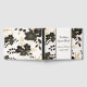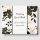Dieses Gästebuch wird in einem hübschen schwarz-metallischen goldenen Hintergrundbild mit floralen Texten in schwarzer Farbe gezeigt. Passen Sie dieses Element an, indem Sie den Beispieltext ändern und stattdessen Ihre Informationen hinzufügen. Bestandsbild: freepik.com