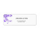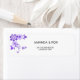 Lila Blume auf personalisierten Hochzeitsetiketten