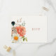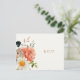 Diese wunderschöne Hochzeitspostkarte bietet einen schönen, cremigen Elfenbeinhintergrund und Text in dunklem Ocker. Eine fröhliche Ausstellung von Blütenblüten an der Vorderseite der Karte verleiht Ihrem Hochzeitsquartier eine jugendliche Eleganz und Stil.