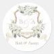 Floral White Elegant Greenery Wappen Umschlag Runder Aufkleber