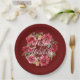 Happy Holidays in schicken weißen Schriftzeichen auf einem Blumenkranz, diese roten Teller sind in zwei Größen erhältlich.