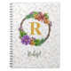 Floral Wreath Initial Letter Monogram Name Marble Notizblock