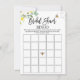 Blorgelbe Bingo-Game-Karte Diese Bingospielkarte mit ihrem Thema bietet eine zarte Blumenarrangements, Bienen- und Herzflüge. Es kann für eine Braut- oder Babydusche verwendet werden, da der gesamte Text editierbar ist.