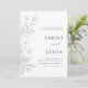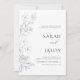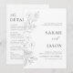 Moderne minimalistische schwarze Hochzeitseinladung mit floralem Motiv mit zarter schwarzer botanischer Linienkunst für ein zeitloses, elegantes Aussehen. Diese doppelseitige Hochzeitseinladung enthält ein sauberes Frontdesign mit Ihren Namen und eine vollständig anpassbare Rückseite für Details zur Zeremonie und zum Empfang, RSVP-Informationen und die Hochzeitswebsite. Perfekt für Paare, die eine moderne, klassische, minimalistische Hochzeitspapeterie mit einem raffinierten Luxus-Feeling suchen. Ideal für Schwarz-Weiß-Hochzeiten, zeitgenössische Hochzeiten und elegante Blumenthemen.