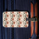 Das Bild zeigt ein harmonisches Muster aus stilisierten Dahlien in warmen Erdtönen, umgeben von grünen Blättern und zarten Zweigen. Die Komposition strahlt Ruhe und Natürlichkeit aus, mit einer eleganten Balance zwischen den lebendigen Blüten und den schlichten Hintergründen. Es vermittelt ein Gefühl von Gemütlichkeit und ästhetischer Einfachheit, perfekt für eine entspannende Atmosphäre.