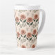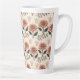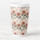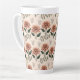 Das Bild zeigt ein harmonisches Muster aus stilisierten Dahlien in warmen Erdtönen, umgeben von grünen Blättern und zarten Zweigen. Die Komposition strahlt Ruhe und Natürlichkeit aus, mit einer eleganten Balance zwischen den lebendigen Blüten und den schlichten Hintergründen. Es vermittelt ein Gefühl von Gemütlichkeit und ästhetischer Einfachheit, perfekt für eine entspannende Atmosphäre.