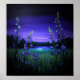 Dieses Plakat mit einem fesselnden lila Amethyst-Nachthimmel, der einen stimmungsvollen, ruhigen Teich überragt, der in einem geheimen Feld der Blume eingebettet ist. Fertiggestellt in einer Ölfarbe Kunstdruck.