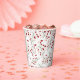 Ein zartes Zusammenspiel von Blume und Blätter entfaltet sich auf weißem Hintergrund und erinnert an einen modernen Stil mit romantischer, verschleierter Aura.