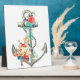 Eine Plakette mit farbenprächtigem gürtelangekertem Anker mit Blume. Nautischer Blumenanker.