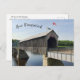 Die Brücke Florenceville ist eine Kombination aus einer Spannweite aus Stahl und einer überdachten Holzbrücke, die den Saint John River überquert. Es ist 49,9 Meter lang und verbindet Ost-Florenz mit West-Florenz. Es ist ein bedeutender Moment für das Wachstum und die Entwicklung des ehemaligen Dorfes Florenzeville und wird als historischer Ort der Region bezeichnet. Vor dem Bau waren die Bewohner auf Fährschiffe angewiesen, um dort zu reisen und zu liefern. Die heutige Brücke wurde 1911 erbaut und auf dem Gelände der ursprünglichen Brücke errichtet, die 1885 erbaut, aber durch einen Brand zerstört wurde. Die Florenzer Brücke ist auch wegen ihres architektonischen Wertes als eine der überdachten Brücken von New Brunswick ausgezeichnet worden. Ursprünglich war die Brücke an beiden Enden bedeckt, aber 1932 wurde die Westseite durch einen Brand zerstört, sodass sie jetzt nur teilweise bedeckt ist. Genießen Sie Ihre neue Florenceville Bridge New Brunswick Canada Postcard!