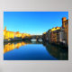 Bild des Flusses Arno mit Ponte Vecchio in der Mitte, die eine der wichtigsten Sehenswürdigkeiten und Attraktionen von Florenz, Italien ist.