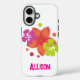 Nehmen Sie die Tropen mit, mit diesem heißen rosa und chartreuse tropischen Blume Telefongehäuse. Der Entwurf dieses Falls umfasst Hibiskus- und Plumeria-Blume, die in tropischen Umgebungen häufig vorkommen. Dies ist auch eine Vorlage, mit der Sie Ihr Telefon mit Ihrem Namen oder einer anderen Nachricht personalisieren können. Der Schriftart ist ein gebeutelter Blockbrief mit einem Strandgefühl. Das macht ein tolles Geschenk für den iPhone (16) Liebhaber in Ihrem Leben.