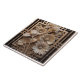 Ein verziertes, goldfarbenes Set mit Blumenmuster innerhalb eines quadratischen Rahmens, das Teil einer größeren Grid-ähnlichen Struktur ist. Das Blumengestell besteht aus mehreren großen, stilisierten Blume mit texturierten Zentren und strahlenden Blütenblättern, die mit Blätter und Stielen verstreut sind. Das gesamte Design hat einen metallischen Schimmer, was darauf schließen lässt, dass er aus Gussmetall oder einem ähnlichen Material bestehen könnte.