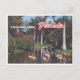 Vintage Grüße aus der Postkartenproduktion von Florida aus den 1960er Jahren mit Flamingos in einem Bach und blühenden Sträuchern und Palmen umgeben.