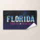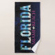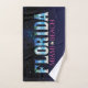 Florida, Miami Beach Badetuch Set Dieses trendige, elegante Badehandtuch Set von 2023, Ein Design, das das Wort Florida enthält, mit dem Einfluss des Meeres, der Sonne und der Bäume, und zeichnet sich durch die blauen Farben des Meeres und des gelben Sandes aus. Und darunter ist das Wort Miami Beach in Fuchsia Es ist für Liebhaber der Strände von Florida da und Miami und seine charmante Atmosphäre Florida ist der südöstlichste Staat der Vereinigten Staaten und hat hunderte Kilometer Strände.