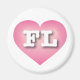 Dieser Magnet zeichnet sich durch ein pulsierendes rosa Herz aus, mit einem weiß gewaschenen Zentrum, das die fett, weiß, die Großbuchstaben FL, die offizielle Abkürzung für Florida, den Sonnenschein-Staat enthält.