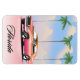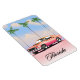 Florida Pink Sunset Reiseplakat mit einem retroamerikanischen Muskelauto gegen einen Sonnenuntergang im Abend.